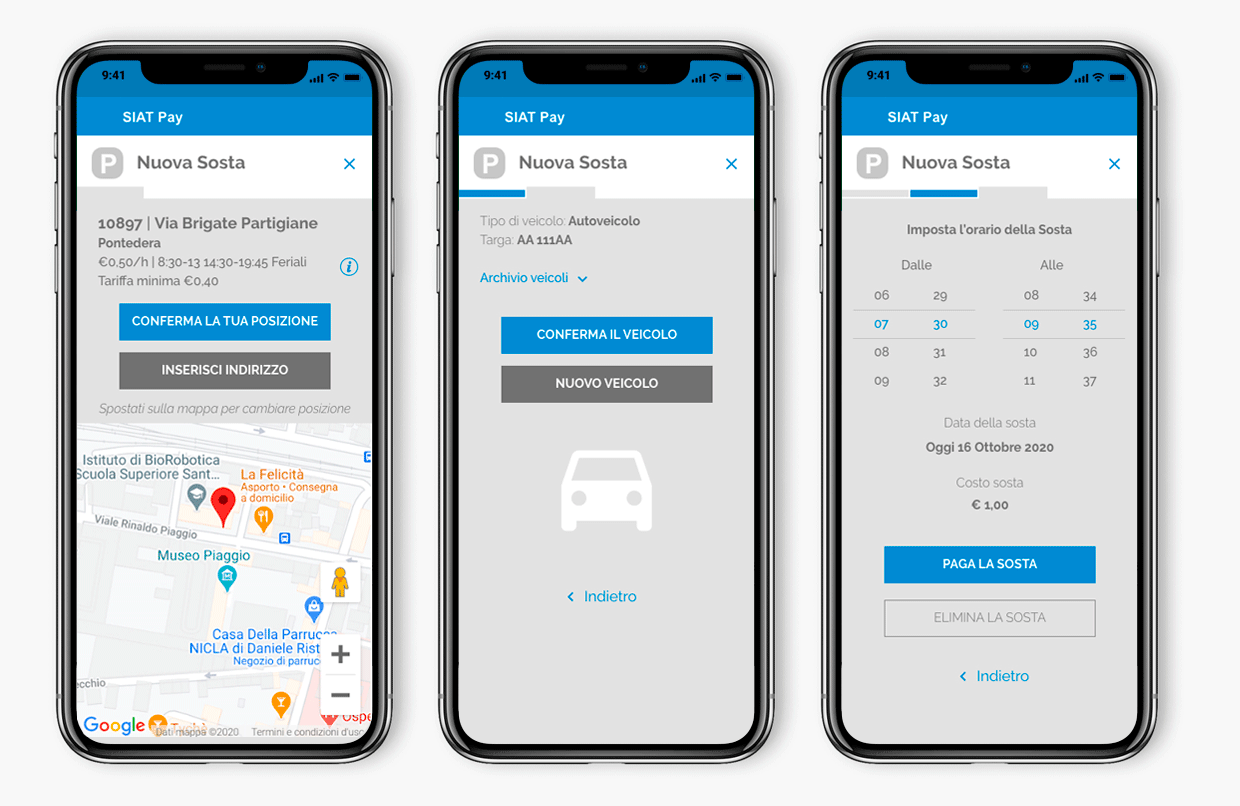 Analizzando i processi di business abbiamo realizzato SIAT Pay, una App parcheggio che riesce con semplicità ad effettuare il pagamento della sosta e l’estensione dell’orario di parcheggio a distanza da mobile senza doversi recare al veicolo. L’app inoltre da la possibilità all’utente di rinnovare con un click l’abbonamento eliminando le file agli sportelli e tenere sotto controllo la sua situazione economica.