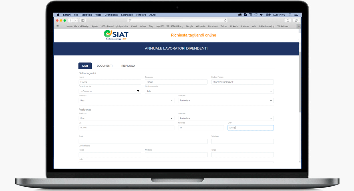 Per gestire in maniera più puntuale e automatizzata le richieste e velocizzare il rilascio dei tagliandi abbiamo progettato e realizzato una piattaforma digitale che permette ai cittadini di richiedere online i vari tagliandi compilando un form e caricando tutti i documenti richiesti anche da smartphone fotografandoli direttamente.