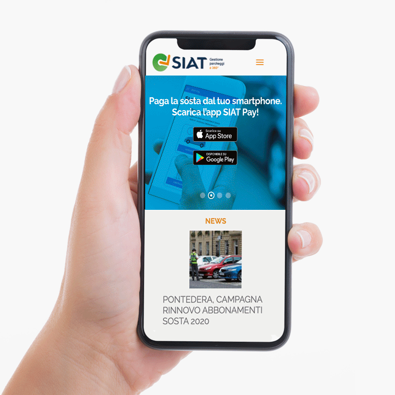 SIAT è una società in forte crescita che si occupa della gestione dei parcheggi pubblici nel Comune di Pontedera (PI). Il progetto di comunicazione crossmediale che abbiamo sviluppato per loro risponde in modo pragmatico e funzionale alla loro esigenza di comunicare in modo chiaro e trasparente con i cittadini e di offrire un’esperienza user-friendly per l’accesso ai servizi online.